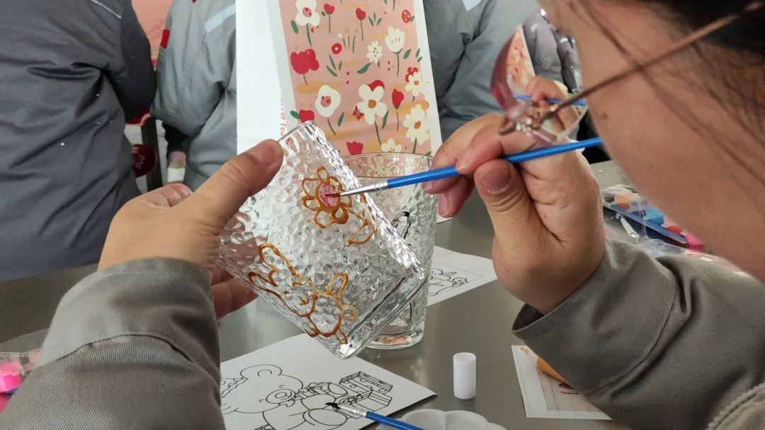 北汽有限黃驊基地于2024年3月8日下午開展了“書畫人生,繪制精彩”為主題的玻璃水杯DIY彩繪制作活動